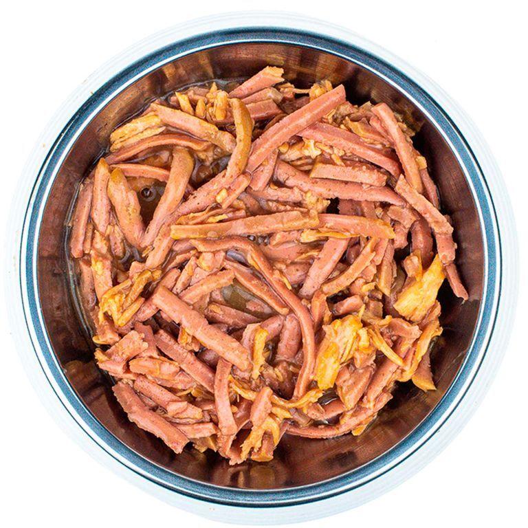 Питательная ценность: белки 7,6%, жиры 5,0%, сырая клетчатка 0,3%, сырая зола 2,1%, влага 76%. Добавки на кг: таурин 1 540 мг, витамин А 15 400 МЕ, витамин D3 454 МЕ, витамин Е 69 мг, aминокислотный хелат цинка гидрат 115 мг, aминокислотный хелат железа гидрат 79 мг, aминокислотный хелат марганца гидрат 28 мг, aминокислотный хелат меди гидрат 18 мг, йодид калия 0,3 мг, селенит натрия 0,065 мг.