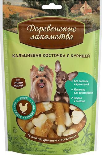 Деревенские Лакомства для мини пород Кальциевая косточка с курицей 55г
