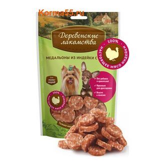 Деревенские лакомства для мини пород медальоны из индейки с рисом, 55 г