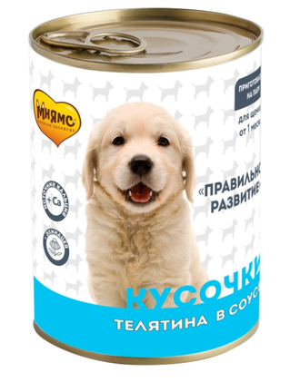 Любознательным и подвижным щенкам на этапе роста особенно нужен сбалансированный и здоровый рацион. Кусочки в соусе с телятиной – такие мясные и такие сытные – помогут малышу всегда быть в активной форме, расти сильным и крепким и дарить счастье всем вокруг. Заботьтесь о своем щенке правильно вместе с «Мнямс».