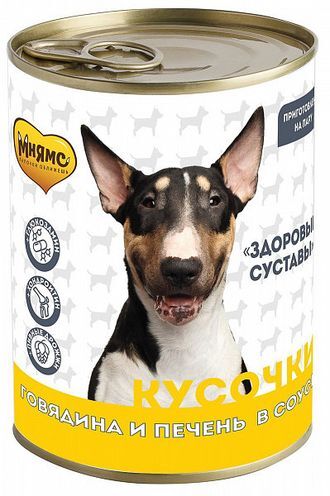 Подвижные собаки, ведущие активный образ жизни, нуждаются в поддержке опорно-двигательного аппарата и суставов. Именно поэтому кусочки в соусе с говядиной и печенью не только очень сытные и вкусные, но и содержат глюкозамин и хондроитин для укрепления суставов, связок и хрящей, и пивные дрожжи, повышающие иммунитет. Заботьтесь о своей собаке правильно вместе с «Мнямс».