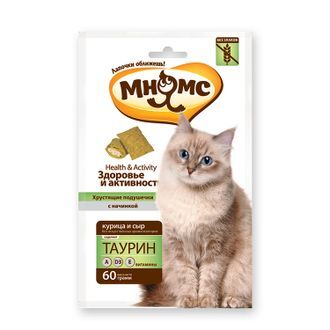 Мнямс Лакомство для кошек Хрустящие подушечки с курицей и сыром "Здоровье и активность", 60 г